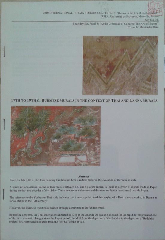 17Th to 19Th C. Burmese Murals in the Context of Thai and Lanna Murals: 2010 Internaternal Burma Studies Conference " Burma in the Era of Globalization" ISRSEA, Universitd de Provence, Marseille,, France July 6Th-9Th