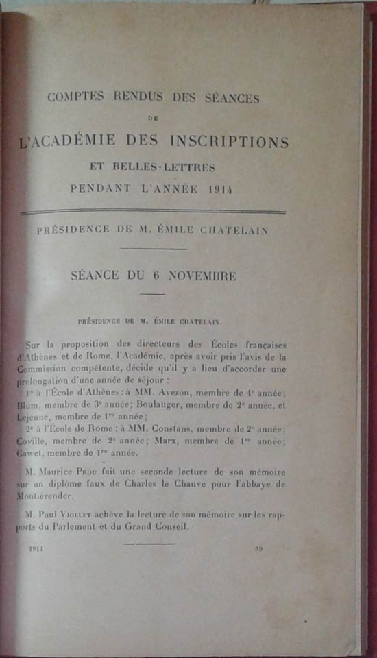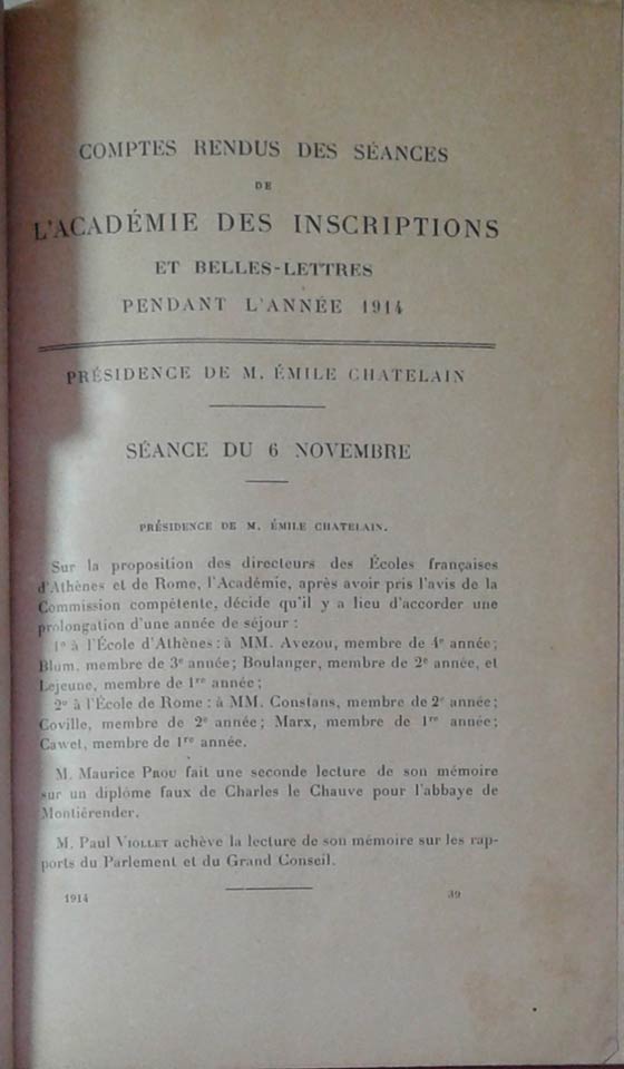 Academic Inscriptions Et Belles-Lettres Comptes Rendus des Seances de L'Anner 1914