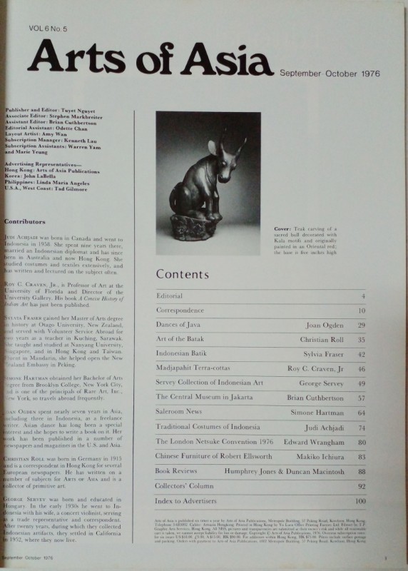 Indonesian Batik, Servey Collection of Indonesian Art, Traditional Costumes of Indonesia, article in Arts of Asia (Sep.-Oct.'1976)