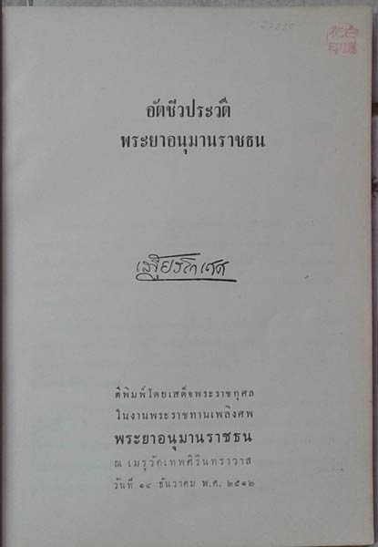 A Funeral book of Phraya Anuman Ratchadhon (Sathian Koset)
