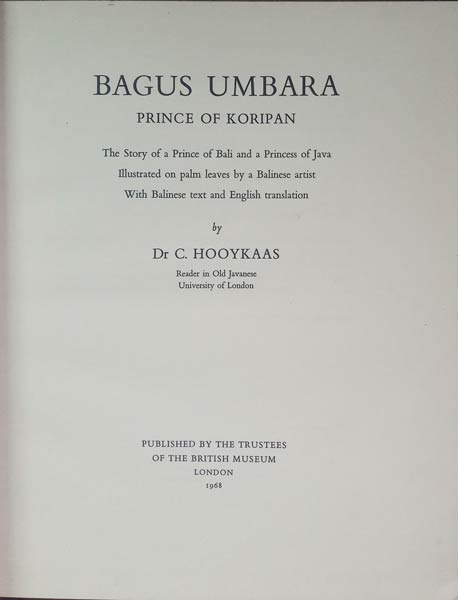 The Story of A Prince of Bali & A Princess of Java Illustrated on Palm Leaves by A Balinese Artist With Balinese Text and English Translation