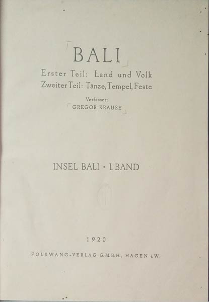 Erster Teil: Land und Voelk Zweiter Teil: Taenze, Tempel, Feste
