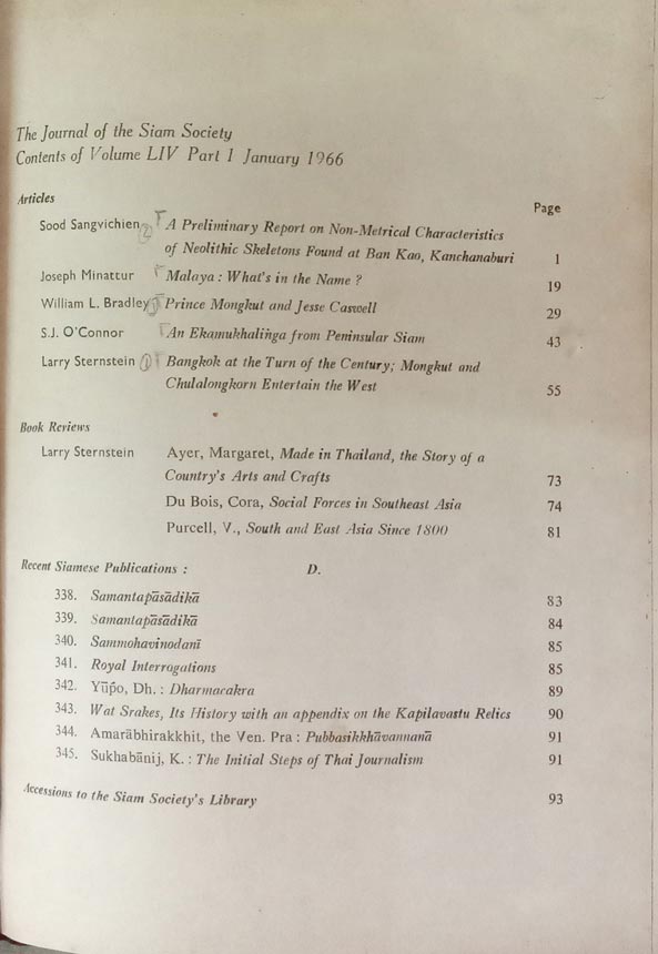 and 2 other Articles of the Journal of the Siam Society Vol. 54/1. Jan 1966
