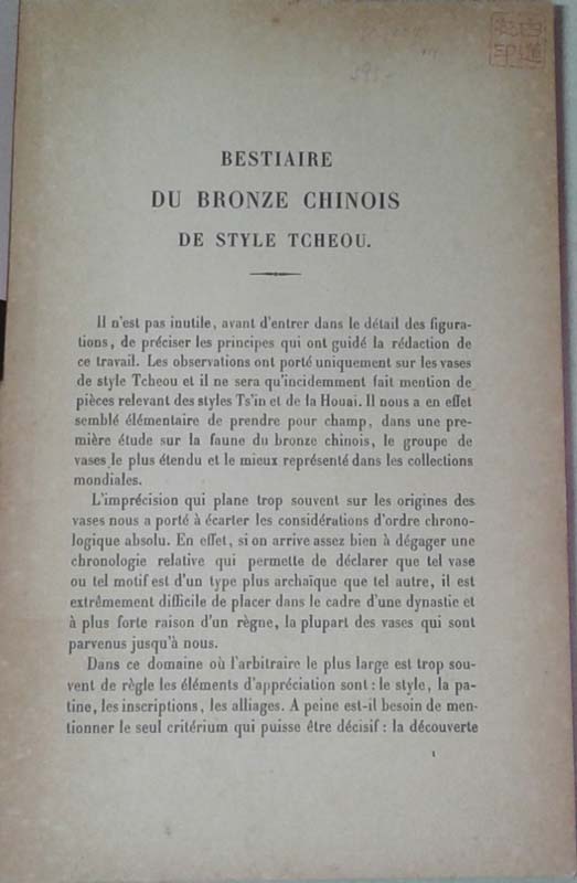 Bestiaire du Bronze Chinoise de Style Tcheou