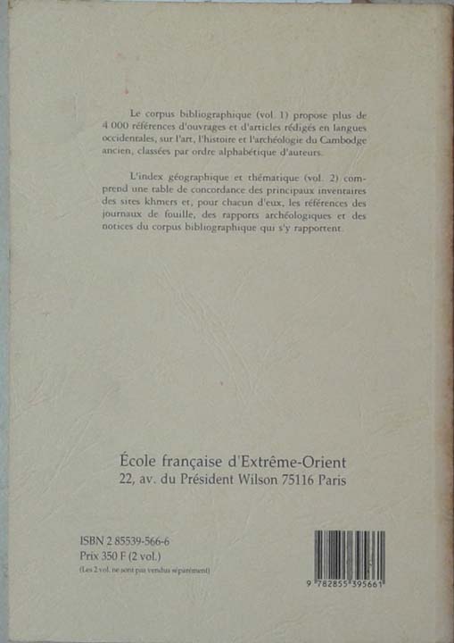 Bibliographie du Cambodge Ancien Vol. 1: Corpus Bibliographique Vol. 2: Tables et Index