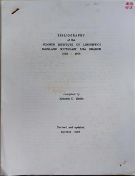 Bibliography of the Summer Institute of Linguistics Mainland Southeast Asia Branch 1958-1978