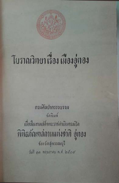 Including French text: U-Thong et son Importance Pour L'Histoire de Thailand By Jeanh Boisselier, (Published for Openning of the Uthong National Museum by King Bhumipol, Suphanburi Province, 1966
