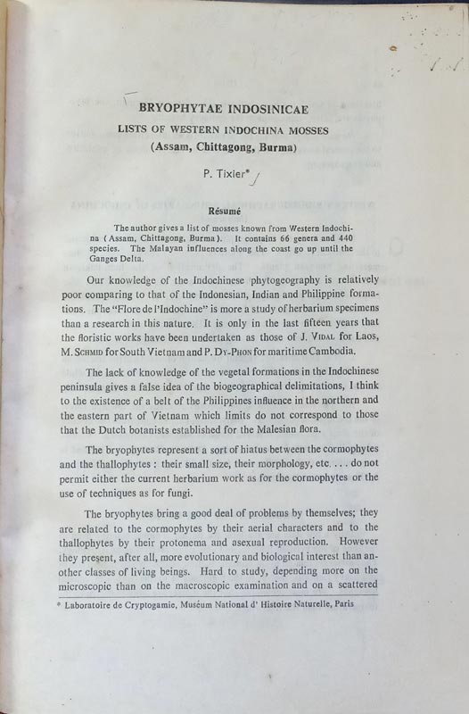 Bryophytae Indosinicae: Lists of Western Indochina Mosses (Assam, Chittagong, Burma)