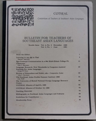 Bulletin for Teachers of Southeast Asian Languages: Double Issue Vol. 4/2 Dec 1990, Vol. 5/1 June 1991: Learning to use Dai in Thai, Ego-Centerd Communication in a 90s Multi-Ethnic College FL Classroom, Language Research: New Thresholds in