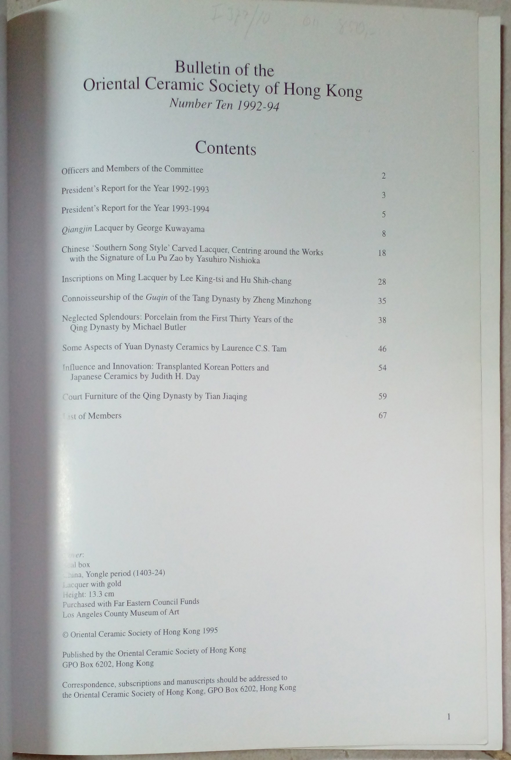 Bulletin of the Oriental Ceramic Society of Hong Kong Number Eleven 1994-97