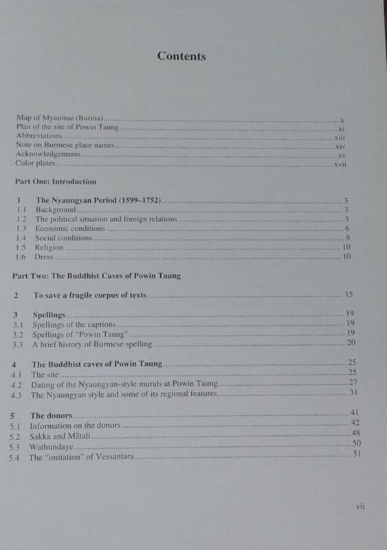 book offers a systematic study of a preeminent site in the artistic and cultural heritage of Southeast Asia. With over five hundred caves, Powin Taung has for centuries attracted pilgrims and today houses eleven monasteries providing a home for about a hundred monks, novices and nuns. The caves, dug into a sandstone formation, are decorated with murals of the twenty-eight Buddhas. They depict the life of Gotama (the historical Buddha) and the Jatakas (the narratives of his previous lives). Only twenty-nine caves (regarded as the most important at the site) and one temple have captioned murals dating from the Nyaungyan and early Konbaung periods (Seventeenth and Eighteenth Centuries). This volume publishes, for the first time, the complete original Burmese texts of these captioned murals, laid out in registers, and their English translation. With its footnotes and appendices, this book is a tool for Buddhologists, historians and art historians, linguists, archaeologists and enlightened amateurs, as well as for guides. It makes a major contribution to the dissemination of the Burmese Buddhist cultural and literary heritage. This systematic work has fifty-six color pages, and altogether four hundred photographs. For each cave it gives a floor plan and plans of the walls with murals.