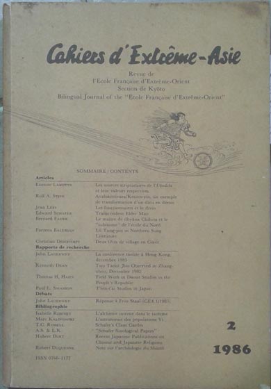 Cahiers d'Extreme-Asie, Revue de l'Ecole Francaise d'Extreme-Orient Section de Kyoto Bilingual Journal of the "Ecole Francaise d'Extreme-Orient. Vol. 2/1986