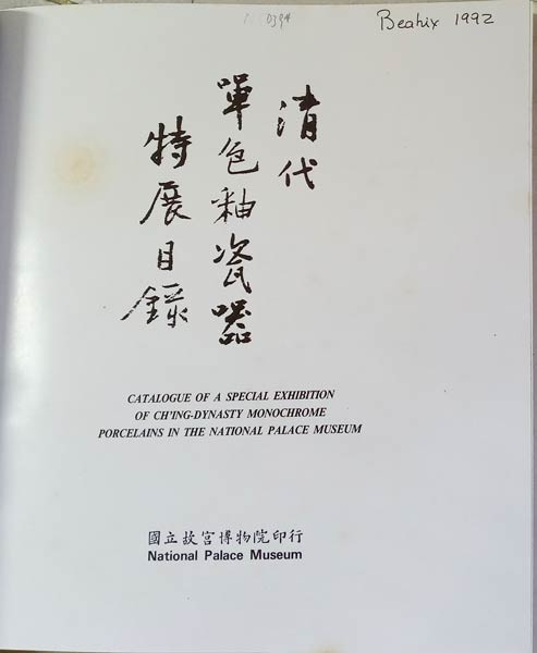 Catalogue of A Special Exhibition of Ch'ing-Dynasty Monochrome Porcelains in the National Palace Museum