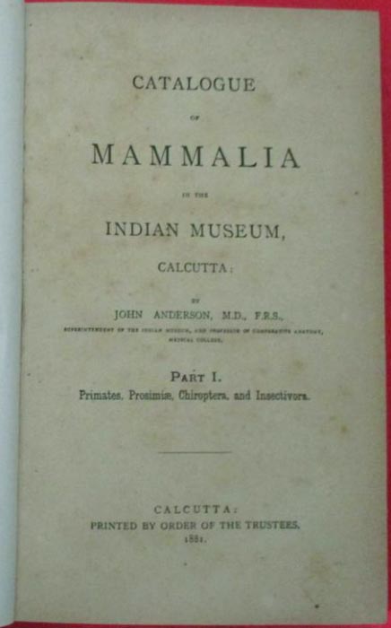 Catalogue of Mamalia in the Indian Museum (Part I & Part II)