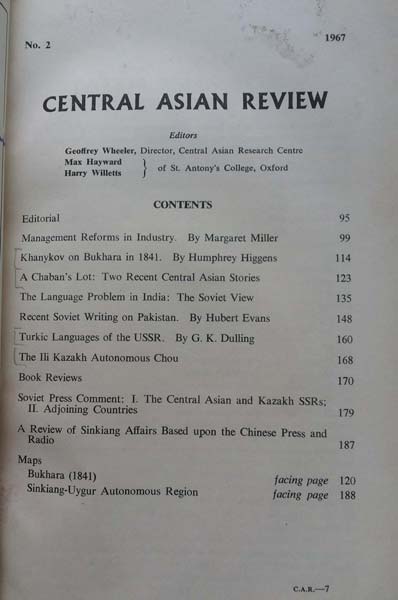 Central Asian Review Vol. 15.2: Khanykov on Bukhara in 1841, A Chaban's Lot: Two Recent Central Asian Stories, Turkic Languages of the USSR, The IliKazakh Autonomous Chou