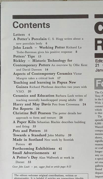 Ceramic Review. No. 115. Jan-Feb 1989: A Potter's Porcelain, Working Potter, Potters' Tips, Historic Techology for Contemporary Potters, Aspects of Contemporary Ceramics, Teaching and Learning in Papua New Guian.,