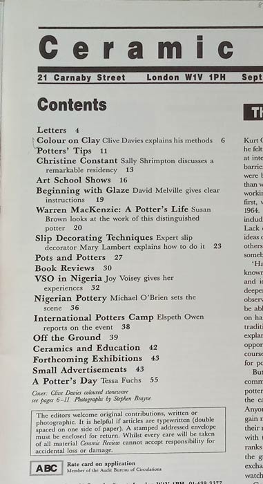 Article of Ceramic Review. No. 119. Sept-Oct 1989