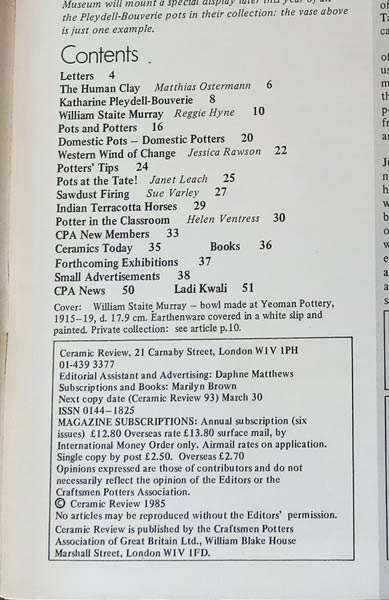 Article of Ceramic Review. No. 92. Mar-Apr 1985