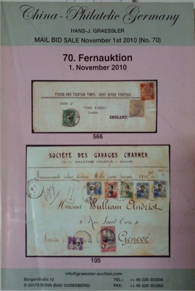 China-Philatelic Germany, 70 Fernauktion 1 November 2010