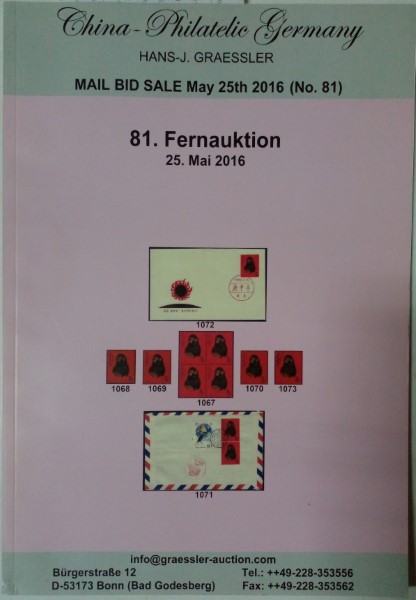 China-Philatelic Germany, 81 Fernauktion 25 Mai 2016