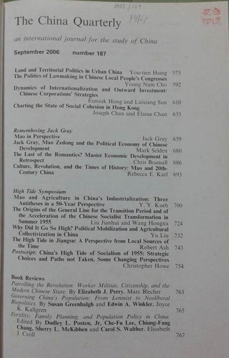 13 Articles of The China Quarterly Vol. 187/Sept. 2006 and another author