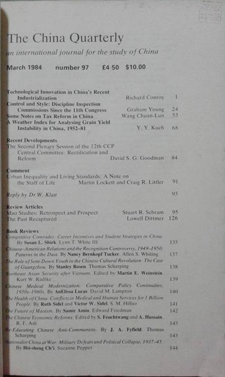 10 Articles of The China Quarterly 97/ March 1984 another author
