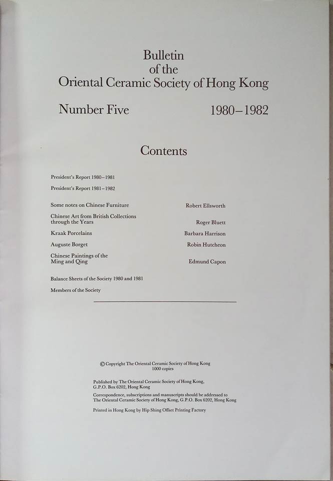 Article of Bulletin of the Oriental Ceramic Society of Hong Kong. Vol. 5 / 1980-1982.