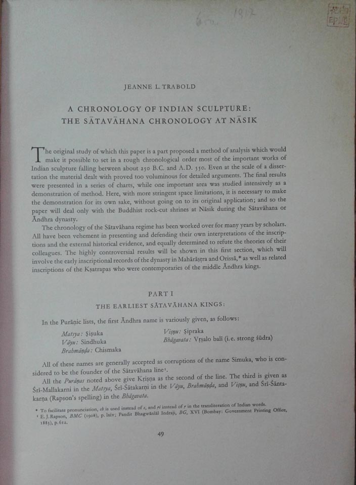 Chronology of Indian Sculpture: The Satavanana Chronology at Nasik, A