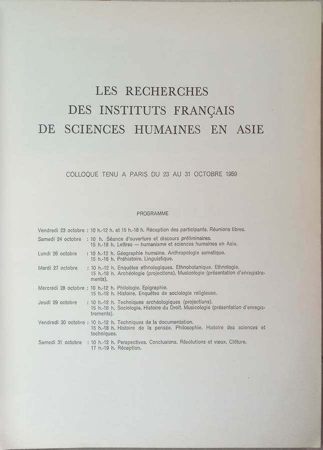 Colloque sur les Recherches des Instituts Francais de Sciences Humanies en Asie