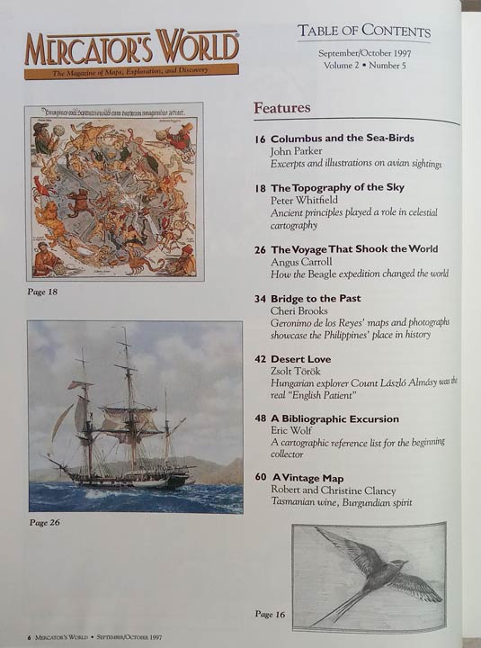 Columbus and the Sea-birds, The Topography of the Sky, The Voyage That Shook the World, Bridge to the Past, Desert Love, A Bibliographic Excursion, A Vintage Map, Global Distortion, Maine Line, Dau Tripping