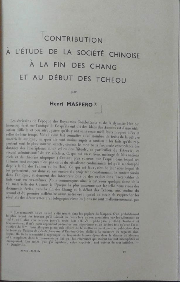 Contribution a l'Etude de la Societe Chinose a la fin des Chang et au Debut des Tcheou