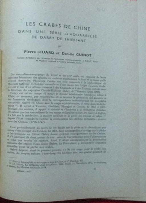 Crabes de Chine dans une Serie D'Aquarelles de Dabry de Thiersant, Les