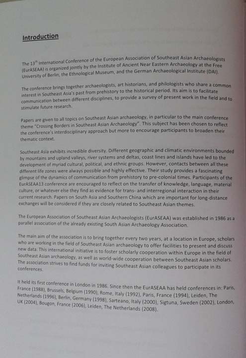 Crossing Borders in Southeast Asian Archaeology, 13Th International Conference of the European Association of Southeast Asian Archaeologists (EURASEAA 13) 27Th Sept. -1St Oct. 2010 Freie Universitaet Berlin