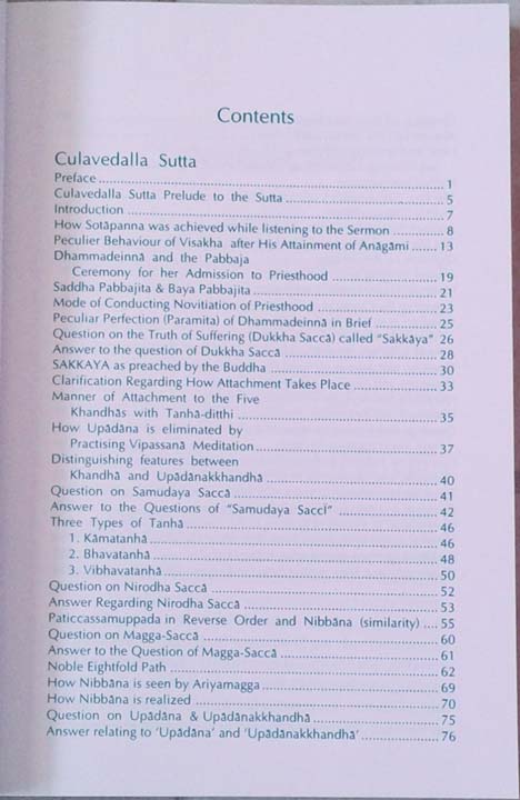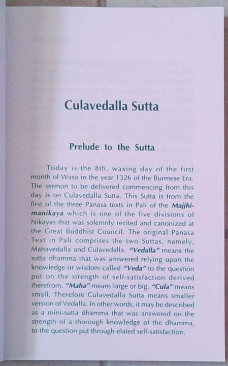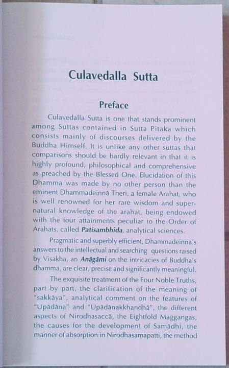 Culavedalla Sutta or Discourses on Various Aspects of Buddha's Dhamma