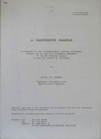 An Analysias of the "Comprehensive Political Settement" Worked out by Five Permnent Members of the UN Security Council to end the Conflict in Cambodia