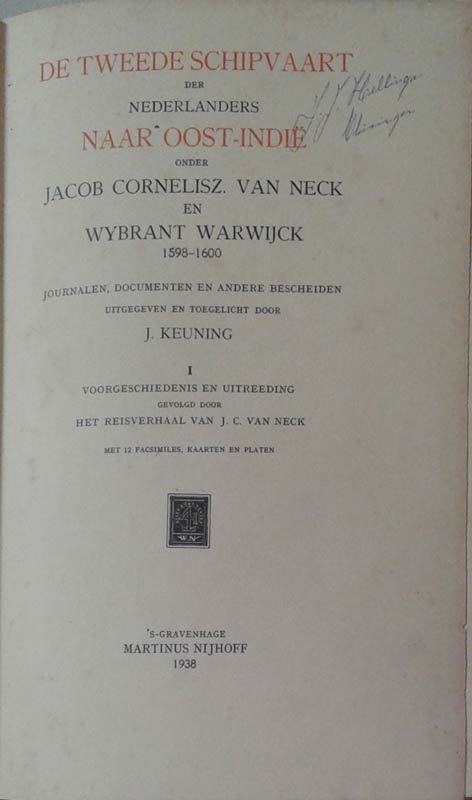 De Tweede Schipvaart der Nederlanders Naar Oost-Indie onder Jacob Cornelisx van Neck en Wybrant Warwijck 1598-1600, Vol.1-4 and 5.1, 5.2,5.3 (Kaarten) Journalen, Documenten en Andere Bescheiden, Kaarten,