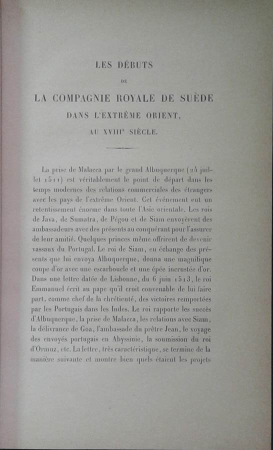 Debuts de la Compagnie Royale de Suede en Extreme Orient 1889, Les