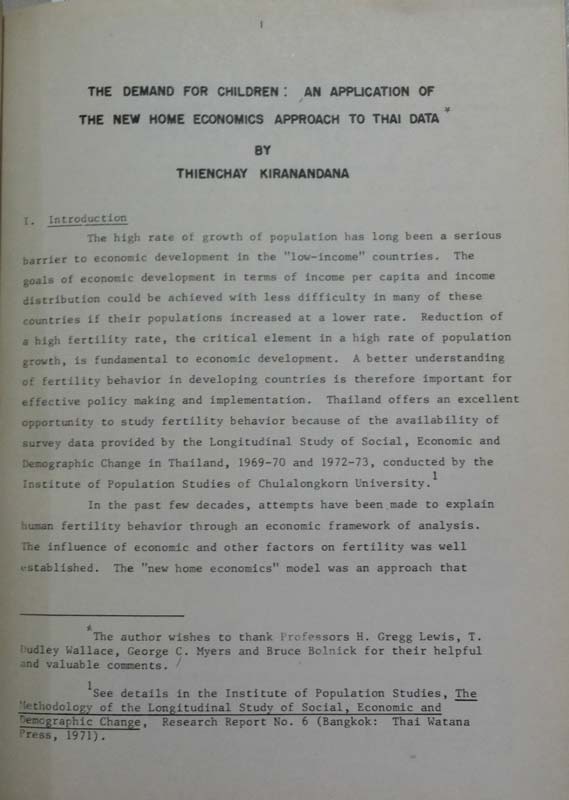 An Application of the New Home Economics Approach to Thailand