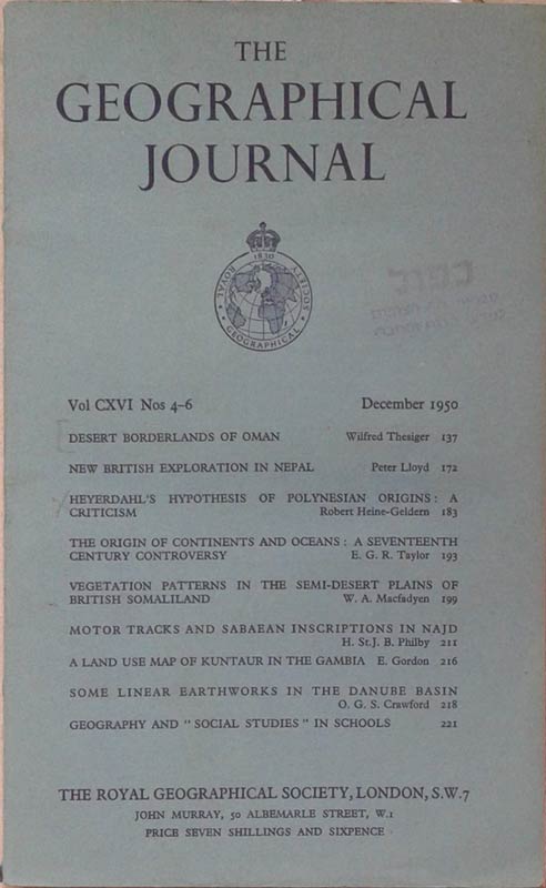 Articles of The Geographical Journal Vol. CXVI No. 4-6