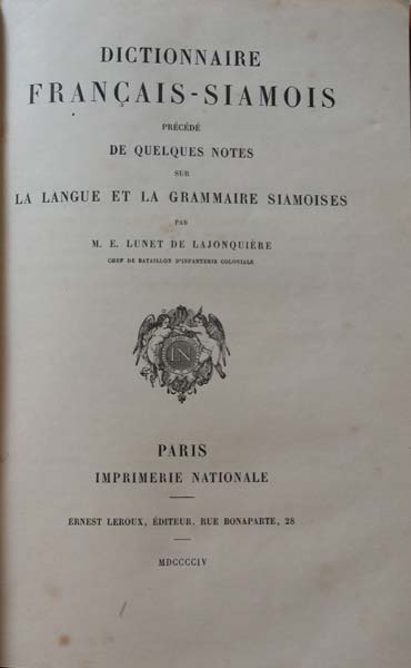 Dictionnaire Francais-Siamois: Precede de Quelques Notes sur la Langue et la Grammaire Siamoises