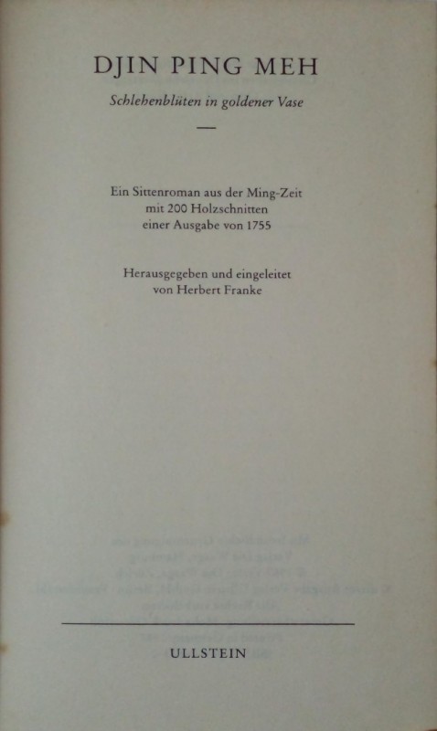 Ein Sittenroman aus der Ming-Zeit mit 200 Holzschnitten einer Ausgabe von 1755