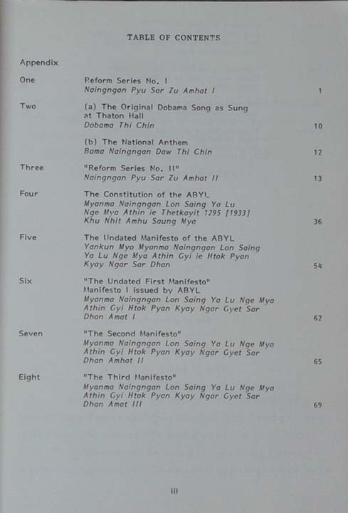 Dobama Movement in Burma. Appendix, The