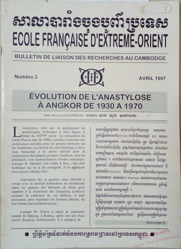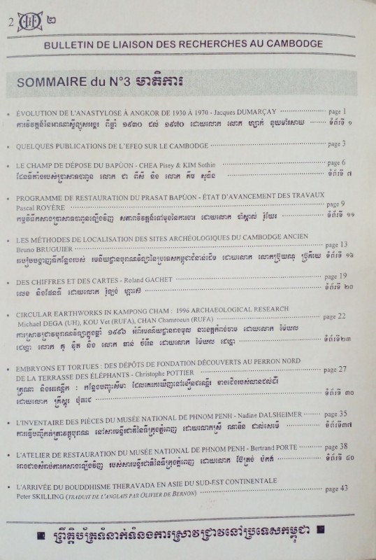 Bulletin de Liaison des Recherches au Cambodge Numero 3, Avril 1997