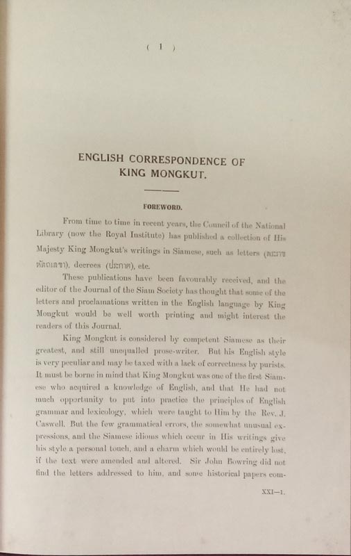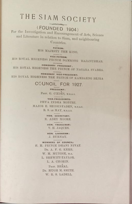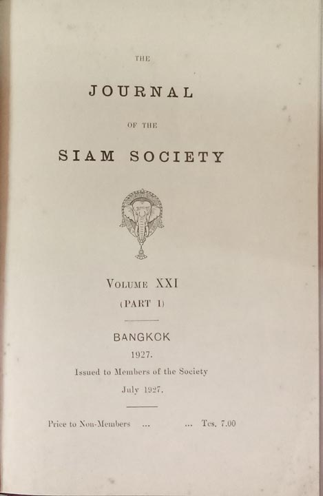 and other Articles of the Journal of the Siam Society Vol. 21/1, 1927