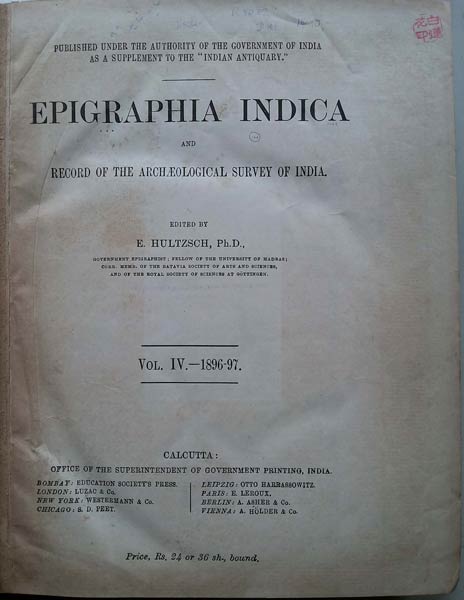 Epigraphia Indica and Record of the Archaeological Survey of India Volume IV-1896-97