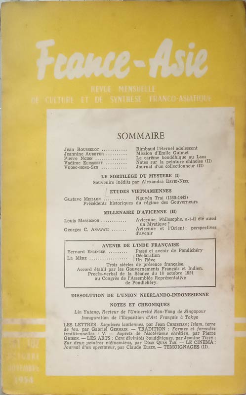 Article in France-Asie Vol. 11 and 6 Other Articles Plus Some Notes