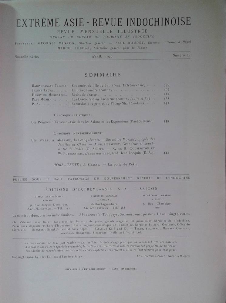 Article 0f Extreme Asie-Revue Indochinoise Revue Illustree. Vol. Avril 1929/34
