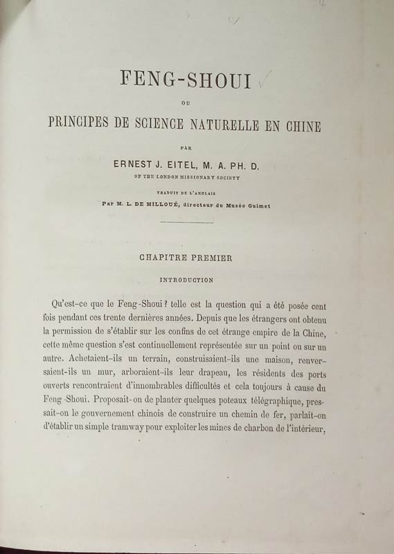 Feng-Shoui ou Principes de Science Naturelle en Chine