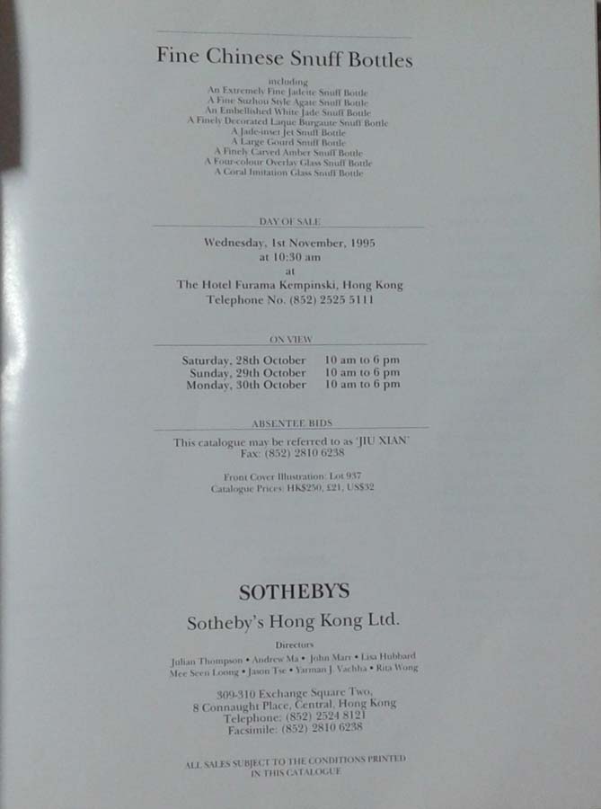 Fine Chinese Snuff Bottles " JIU XIAN"