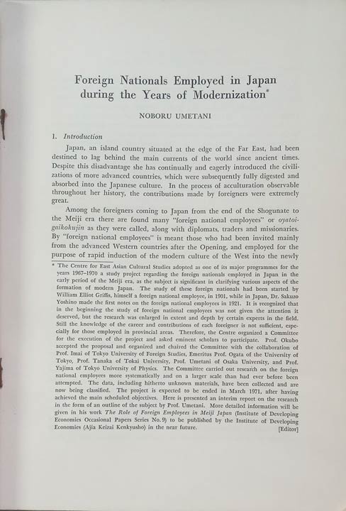 Foreign Nationals Employed in Japan During the Years of Modernization